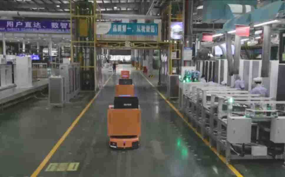 为车载冰箱物流配送打造的智能解决方案,,,,包含产中物流通过潜伏举升AMR搬运至线边,,,产后成品物流智能仓储,,,流程包含产中物流智能齐套入库,,,线边安灯叫料AMR智能配送至线边,,,成品入库、、、、出库,,,,通过无人堆高车机器人,,,智能仓储管理替代人工作业管理,,,,实现更高存储、、、、更高效率、、、、更具柔性化的解决方案。。。。