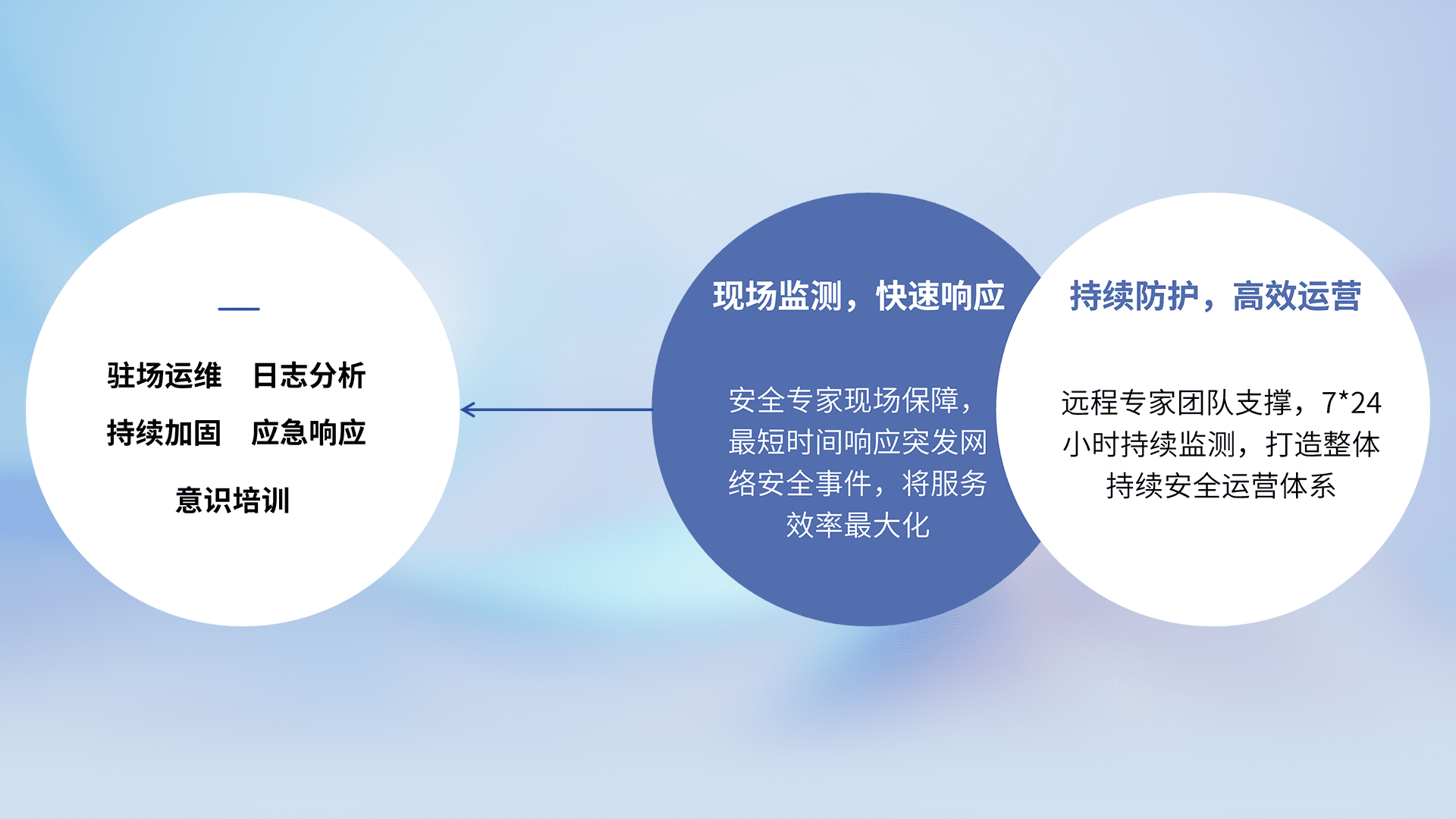 7X24小时持续监测安全事件,保持安全策略有效性,降低资产脆弱性风险,,,,精准拦截黑客攻击,,,减少被黑客利用的机会,,第一时间遏制,,,降低损失。。